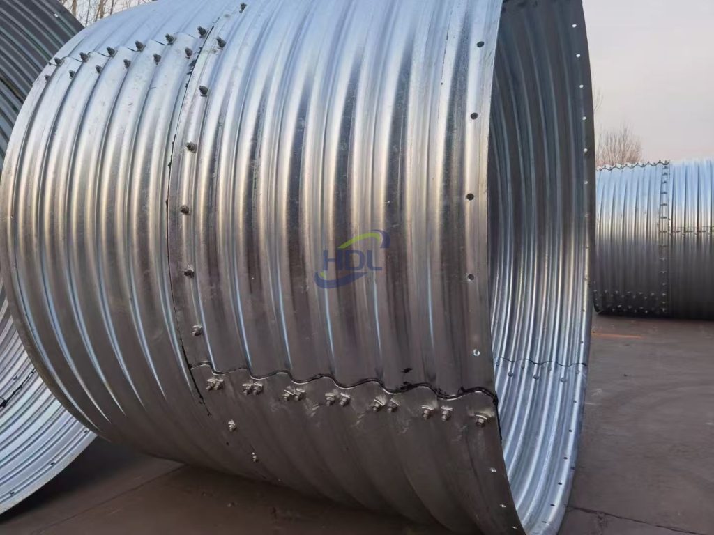 3. Сборка и соединение секций труб - Укладка гофрированных стальных труб вдоль оси, выравнивание соединений.